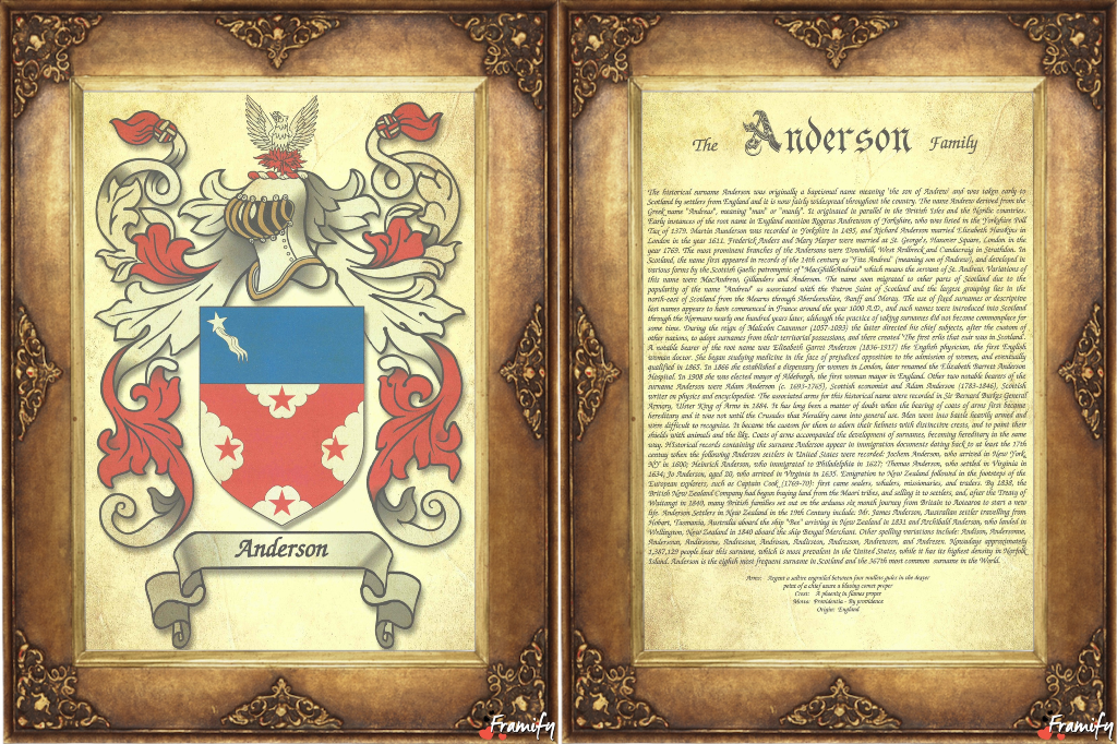 - Full color Family Coat of Arms/Family Crests most commonly associated with your family's last name/surname.